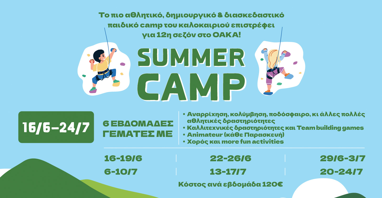 Το ΟΑΚΑ INDOOR CLIMBING ανοίγει την αγκαλιά του για να φιλοξενήσει ένα αθλητικό, δημιουργικό και πάνω απ’ όλα χαρούμενο καλοκαιρινό camp. Σας προσκαλούμε να γίνουμε μια παρέα και να μοιραστούμε χαρές, ιδέες, στιγμές μοναδικές στο χώρο μας και να ανακαλύψουμε έναν εαυτό γεμάτο φαντασία, δύναμη και δημιουργικότητα. Στο κέντρο του αθλητισμού, στο Ολυμπιακό Στάδιο της […]